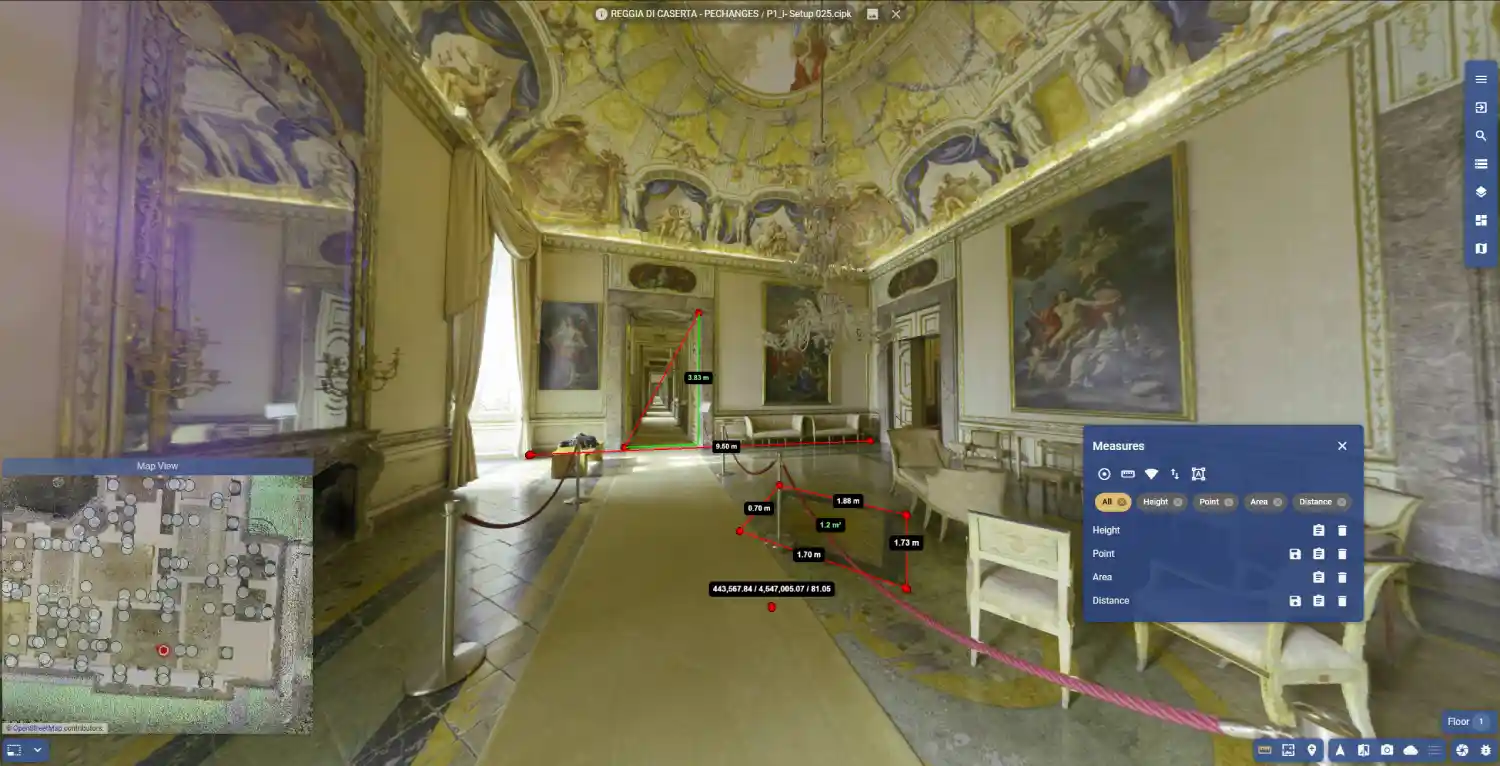 La piattaforma permette la gestione e integrazione di nuvole di punti e immagini sferiche 360° metriche acquisite attraverso strumentazione laser scanner statica, mobile mapping o droni, garantendo una base di dati solida e accurata: la navigazione multimodale 2D/ 3D rende l’esperienza utente intuitiva e immersiva.