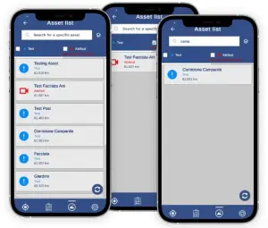 L’applicazione prevede, inoltre, una lista contenente tutti gli asset relativi al progetto selezionato. Gli asset sono ordinati in base alla distanza dall’utente, possono essere filtrati per layer e ricercati per nome.